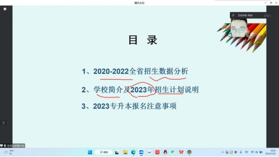 为帮助备考学生进一步了解2023年专升本招生政策和招生院校,3月20日晚,beat365中文官方网站邀请武汉工商学院举办线上宣讲会。武汉工商学院物流学院院长助理张龙,beat365中文官方网站党总支副书记赵超、就业专员白瑶及部分有专升本意愿的学生参加宣讲会。