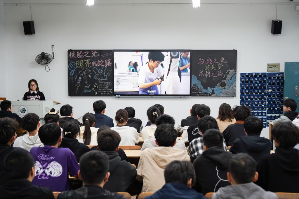 为引导同学们技能成才,3月28日晚,beat365中文官方网站于明德楼顺利开展了以“技能之光照亮成才之路”为主题的时政360主题活动,本次活动由2023级各团支部统一组织开展学习。