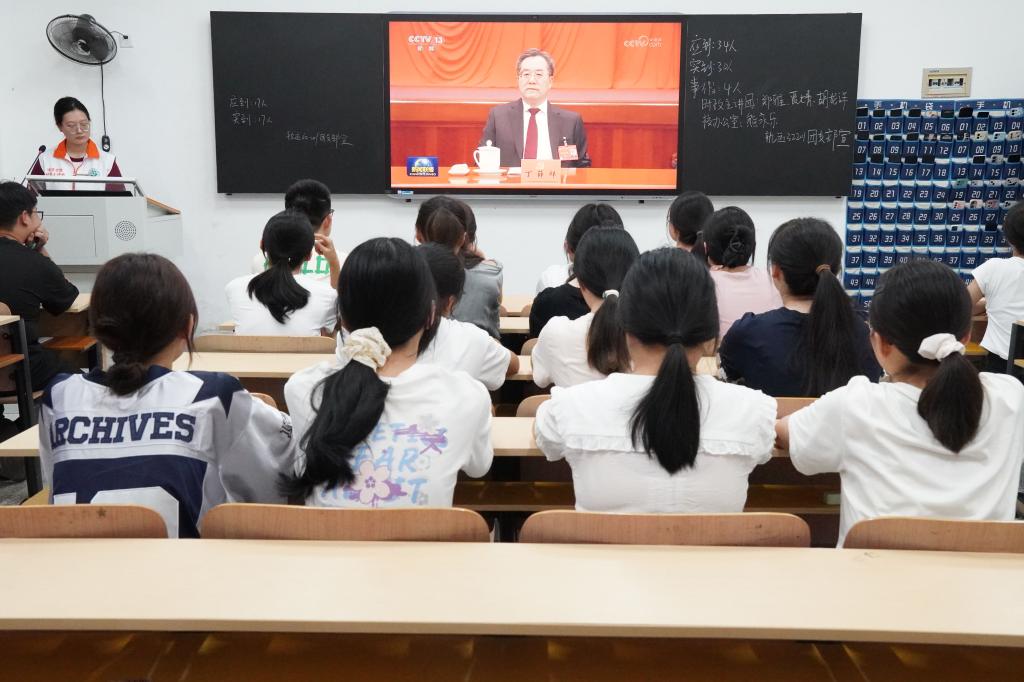 活动伊始,主讲人带领同学们深入了解了党的二十届三中全会精神,通过学习习近平总书记在会议上的重要讲话,让同学们对会议精神有了更加深刻的理解和认识。随后,主讲人围绕“深化教育综合改革”“完善就业优先政策”“《决定》原文名词解释”等青年学生关心的问题,结合会议精神与生活实际展开研讨。最后,主讲人以视频回顾中国繁荣发展历程,激励同学们保持奋斗姿态,为实现中华民族的伟大复兴贡献青春力量。