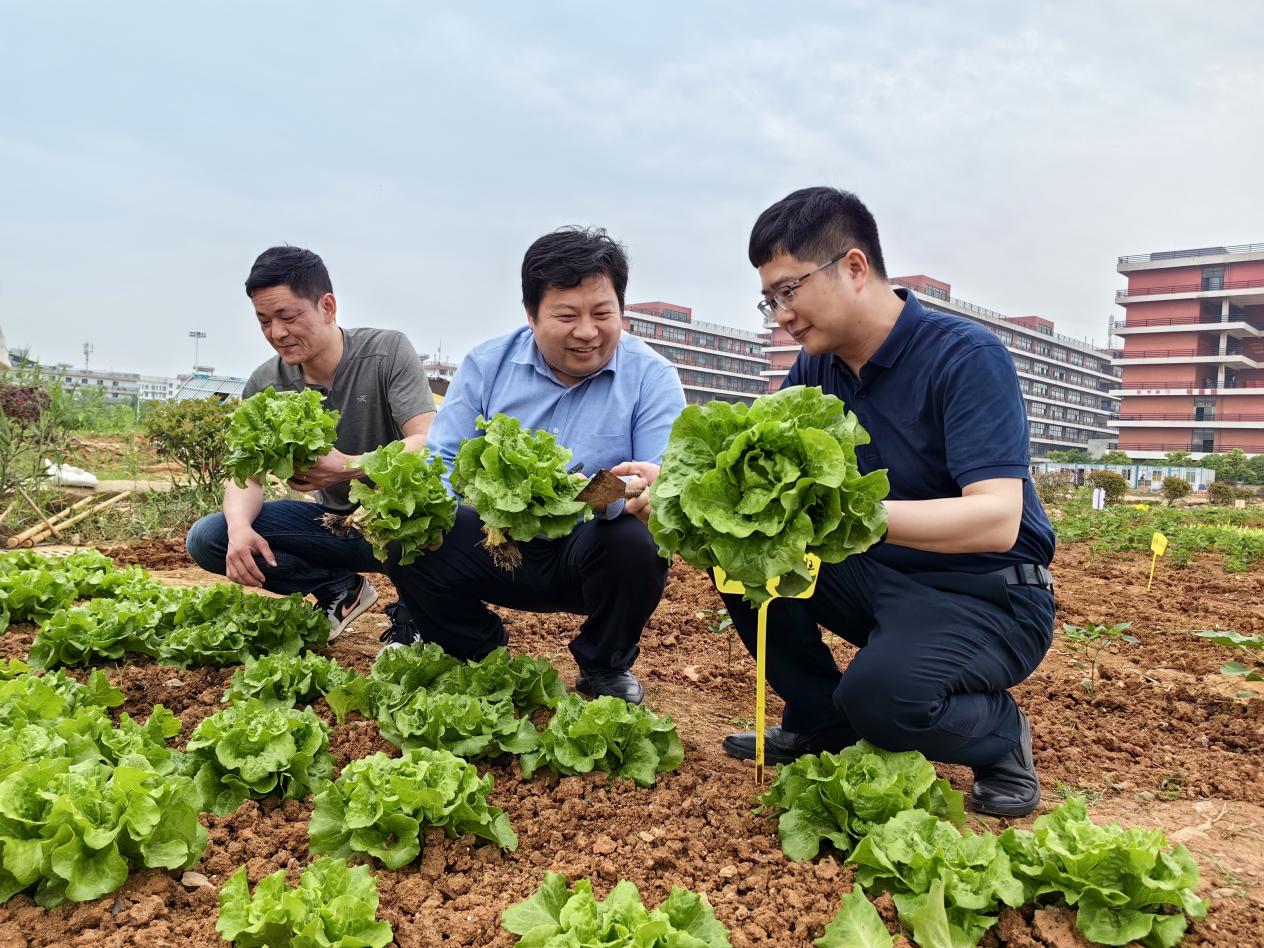 “老师,我们班种的生菜可以采收啦!”4月25日中午,在党委学工部部长谢刚、副部长吴冕,beat365中文官方网站党总支书记、院长许迅安,beat365中文官方网站党总支副书记赵超,劳动教育指导老师陈慧珍等老师的现场指导下,高铁客服12301班的学生率先收获学校“开心农场”第一批劳动成果。看到亲手种植的生菜丰收,学生们兴奋不已。