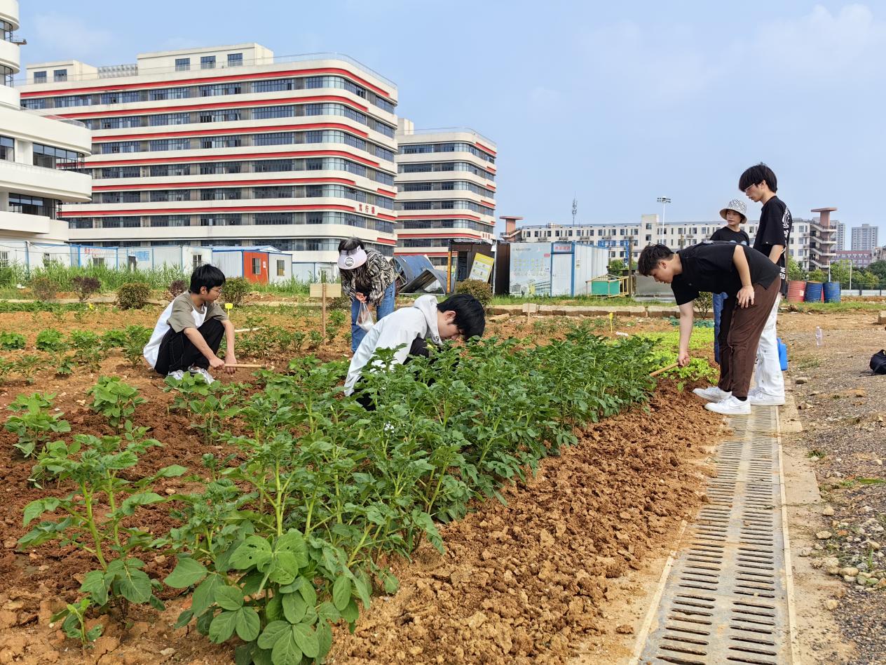 劳动教育实践中,beat365中文官方网站按照“教师指导、班级负责、学生参与”的原则,采取教师示范、学生实践的方式,组织同学们根据季节特点种下了毛豆、土豆、生菜、玉米、番茄、黄瓜、茄子等时令蔬菜,辅导员(班主任)每天下田和学生同劳动,在翻地、起垄、播种、施肥、除草等环节中引导学生认识农作物,掌握基本的农业生产技能,感受劳动的意义和价值,体验劳动的快乐。
