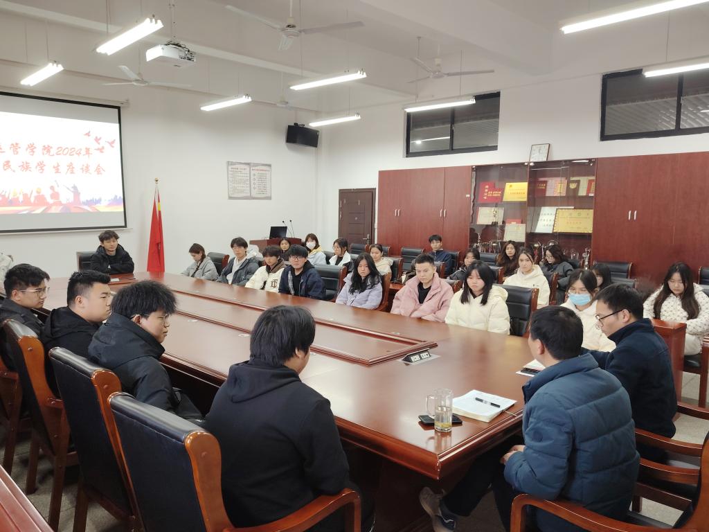 为深入学习贯彻落实习近平总书记关于加强和改进民族工作的重要思想,深化铸牢中华民族共同体意识教育,切实做好少数民族学生教育管理服务工作,11月28日下午,beat365中文官方网站在崇德楼704会议室召开少数民族学生座谈会。学院党总支副书记赵超、学工办主任杨华及31名少数民族学生代表参加座谈会。