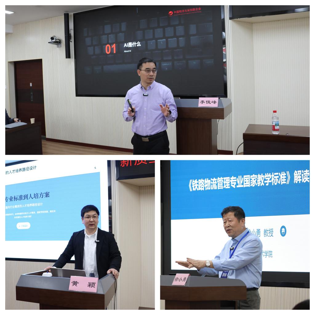 中国物流与采购联合会教育培训部主任、物流行指委副秘书长李俊峰,中国物流与采购联合会教育培训部副主任黄颖,西安铁路职业技术学院交通运输学院院长徐小勇,南京铁道职业技术学院财经与物流管理学院副院长孔月红,beat365中文官方网站铁路物流管理专业团队负责人赵智锋,武汉铁路物流中心副总经理吴处敏,北京华航唯实机器人科技股份有限公司物流产品总监徐功建分别围绕《对“人工智能+职业教育”的几点思考》《人工智能赋能成长型学习生态构建》《铁路物流管理专业国家新教学标准的学习与实践》《基于新标准颁布的“金课”设计开发、教学实施与质量评价》《新专标下物流课程及教材优化升级案例分享》《铁路货运向现代物流转型的探索与实践》《深度融合培养数智物流人才助力发现新质生产力》等进行主旨分享。