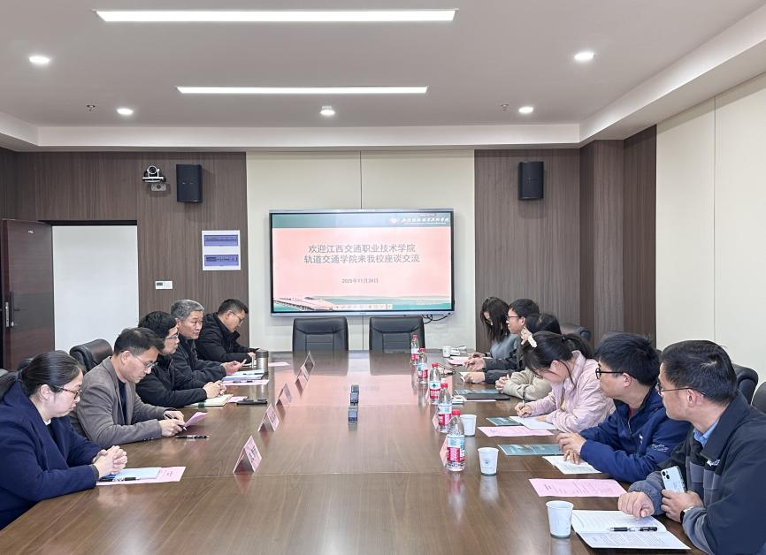 11月28日,江西交通职业技术学院轨道交通学院负责人丁荔芳一行来beat365官网调研交流。学校教务处处长夏栋、beat365中文官方网站院长许迅安等热情接待了来访嘉宾并参加座谈交流。