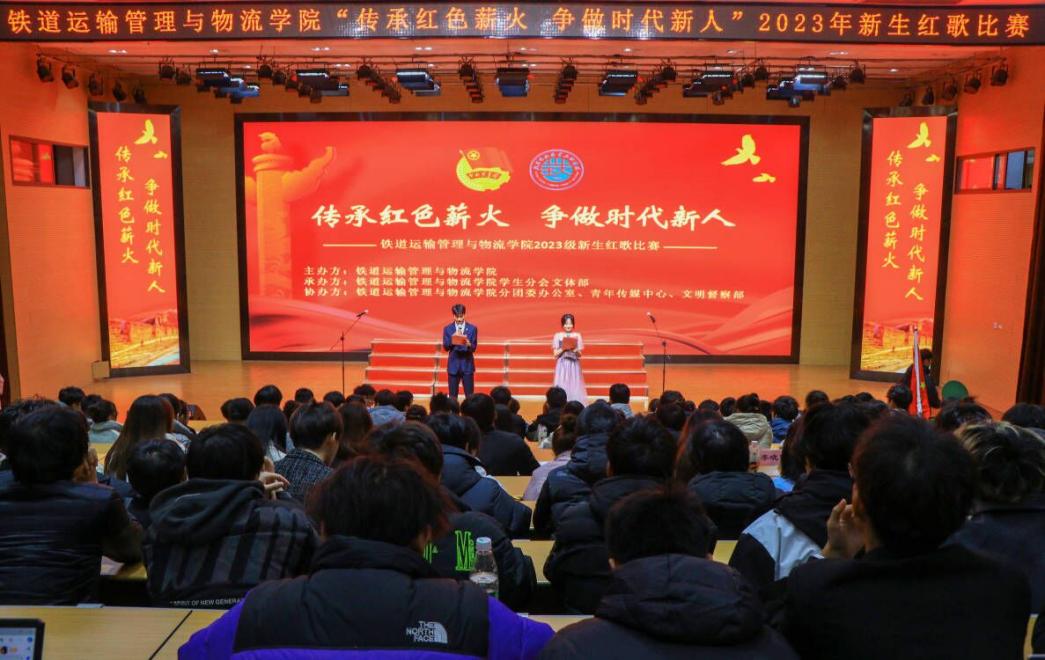 为传承革命先烈红色基因,弘扬爱国主义精神,11月30日,beat365中文官方网站在通达厅举行“传承红色薪火 争做时代新人”为主题的2023年新生红歌比赛。学院党总支副书记赵超,学工办主任杨华,铁运教研室主任王帅,学生党支部书记陈慧珍,辅导员梅胜、李晓阳等老师及该学院2023级全体学生参加此次活动。万学涛、王颖两位同学担任主持人。