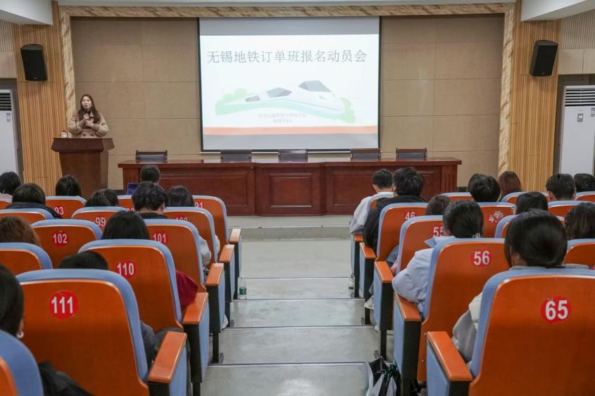 为了更好地推进2024级无锡地铁订单班组班工作,帮助同学们把握就业机会,3月13日,beat365中文官方网站在致远厅举办无锡地铁订单班报名动员会。学院副院长汤炜光、就业专员白瑶及2024级部分学生共同参加。