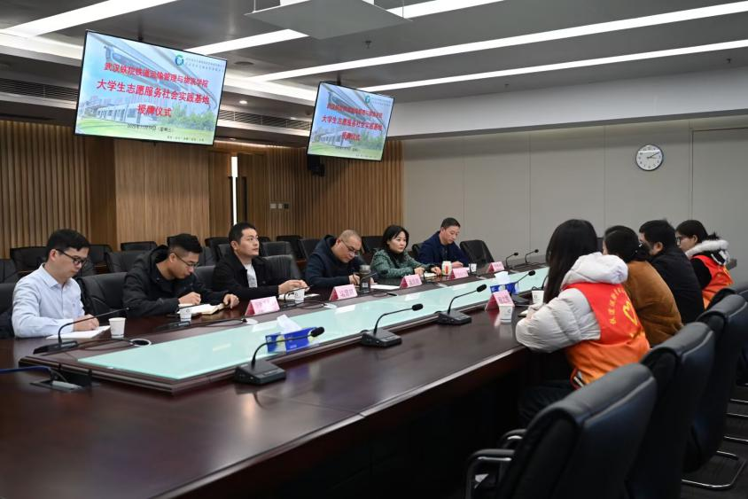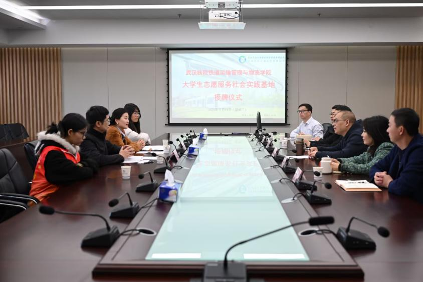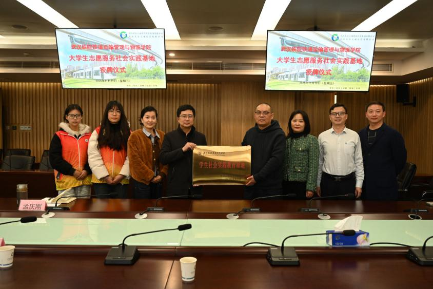为了拓展志愿服务平台,助力学生社会实践,11月19日,beat365中文官方网站与武汉光谷交通运营有限公司(有轨电车)联合举办大学生社会实践基地授牌活动。学院党总支书记、院长许迅安,团委书记程之哲,“小红旗”志愿服务队学生代表与武汉光谷交通运营有限公司总经理助理孟庆刚及公司相关部门负责人共同参与了此次活动。