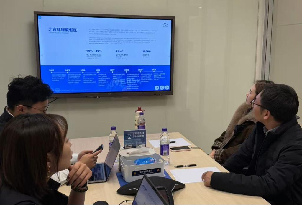 下午,赵超一行来到北京环球度假区实地调研。该公司人事主管任小超经理详细介绍了目前招聘岗位的具体职责与要求,同时带领赵超一行实地走访园区,亲身体验学生工作、生活场景。